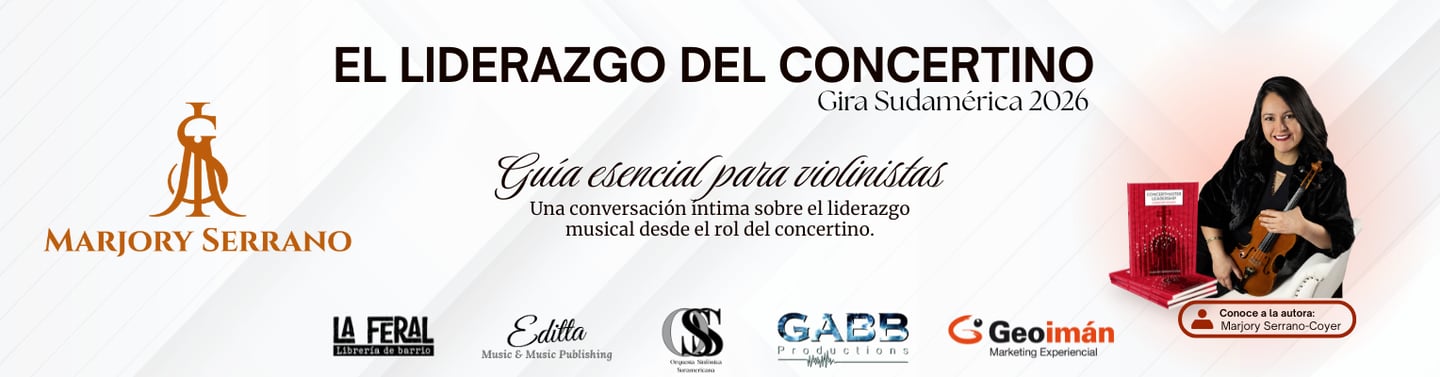 La violinista, concertino y autora Marjory Serrano-Coyer presentará en Santiago de Chile su libro El liderazgo del Concertino. Guía esencial para violinistas, en un Lecture-Recital que tendrá lugar el martes 27 de enero de 2026, a las 18:30 hs, en La Feral - Librería de Barrio (Román Díaz 68, Providencia).